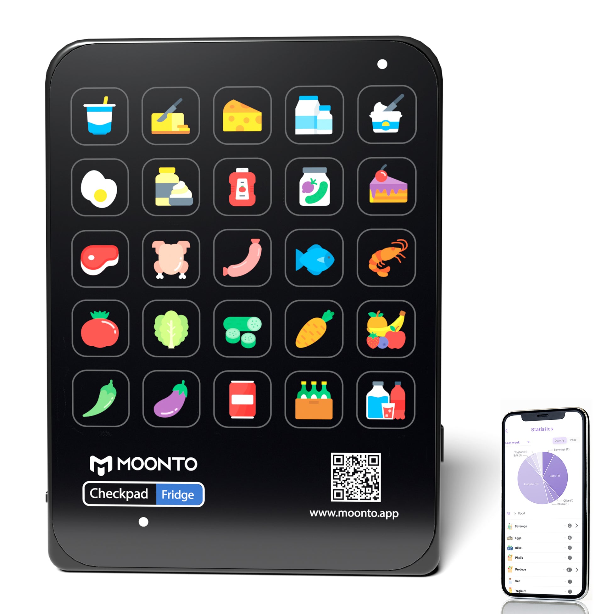 Unsere kostenlose App ist im App Store und bei Google Play erhältlich. Sie ermöglicht Ihnen die Konfiguration und individuelle Anpassung Ihres Checkpads und erleichtert das Erstellen und Teilen von Einkaufslisten mit Familie und Freunden, sodass jeder den Überblick darüber behält, was gekauft werden muss.