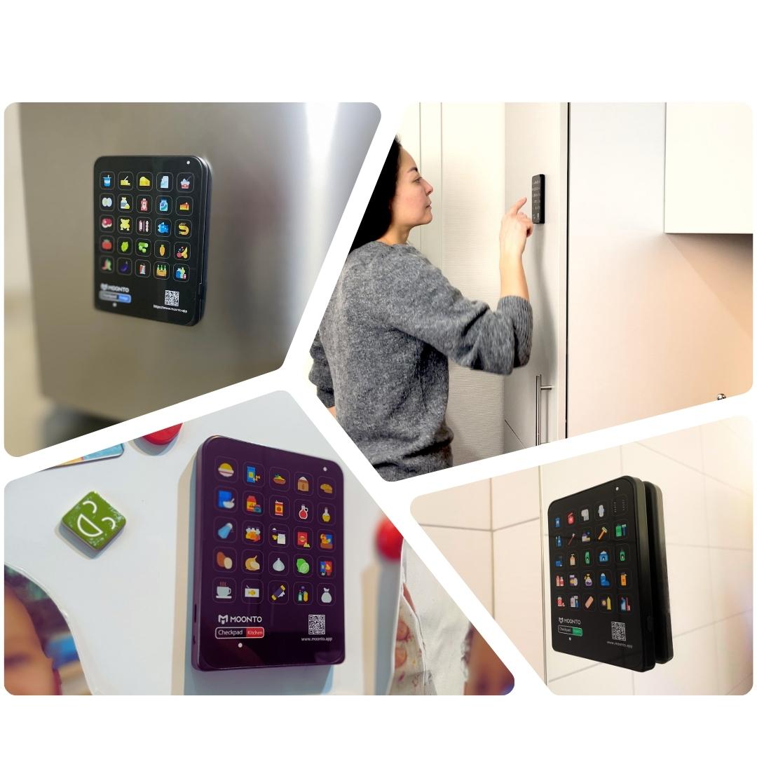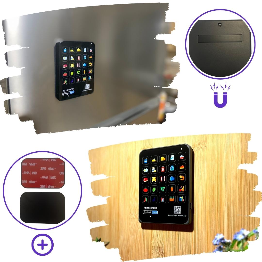 Checkpad verfügt über einen praktischen Magneten und eine selbstklebende Metallplatte, sodass Sie es dort anbringen können, wo es für Sie am praktischsten ist.